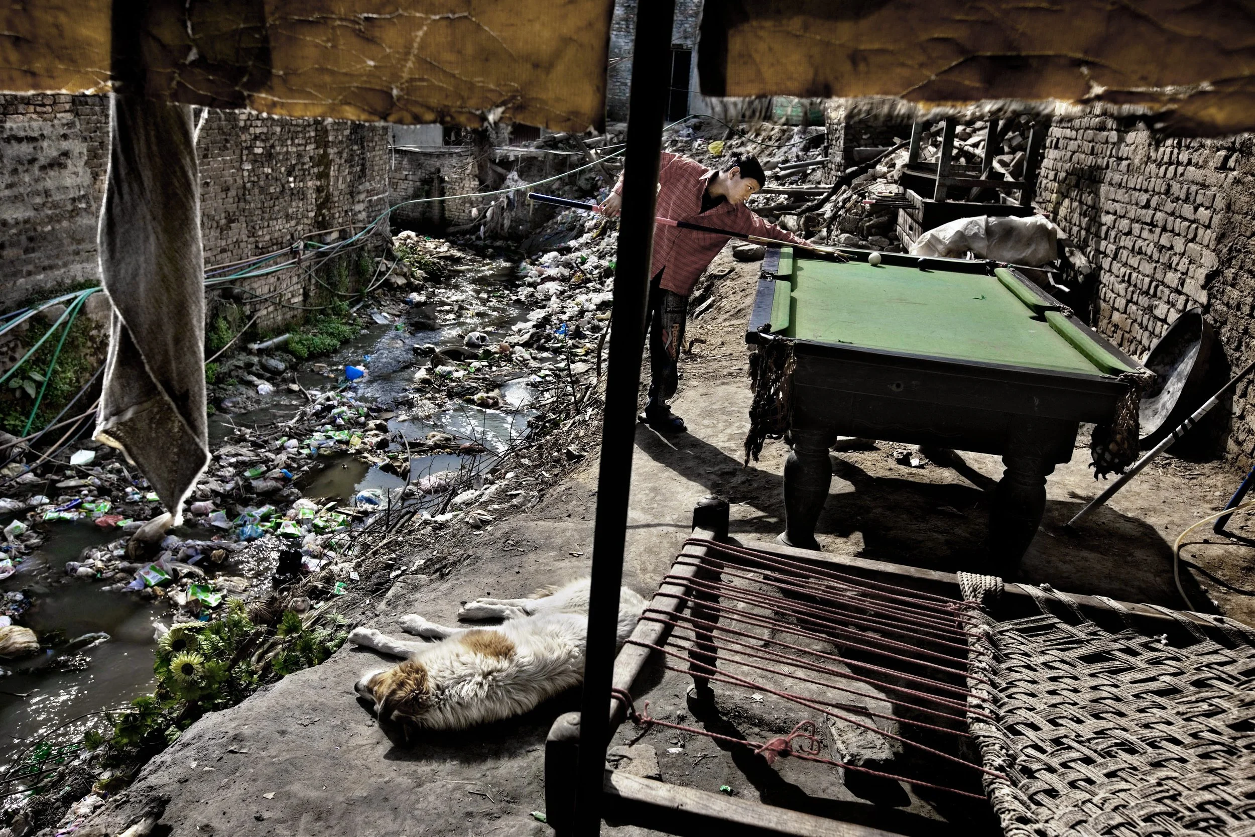 A small creek runs through the slum in Islamabad, the capital. The smell of refuse is overwhelming.